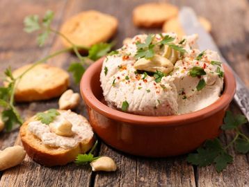 A smoky cheese spread that is slightly spicy and deep in flavor.