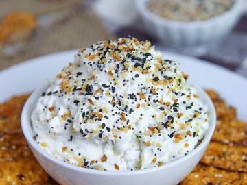 Creamy and delicious! This cheese is seasoned with garlic, onion, sesame seeds, poppy seeds and salt.